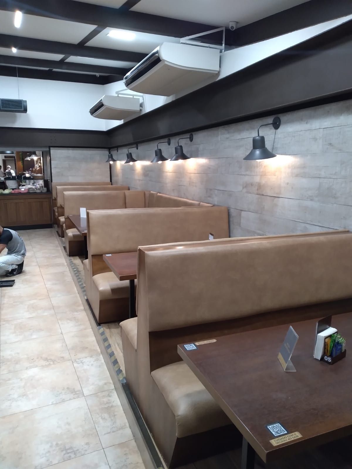 Quando o sofá do cliente chega na empresa já vai para a mesa de um profissional que irá retirar todo o revestimento atual, isso é feito manualmente com ferramentas específicas. Depois da limpeza completa passa para a mão de outro profissional que irá reforçar a estrutura de madeira colocará as persintas elásticas de reforço, o revestimento de espuma, e finalmente entregará para o estofador colocar o material escolhido pelo cliente.